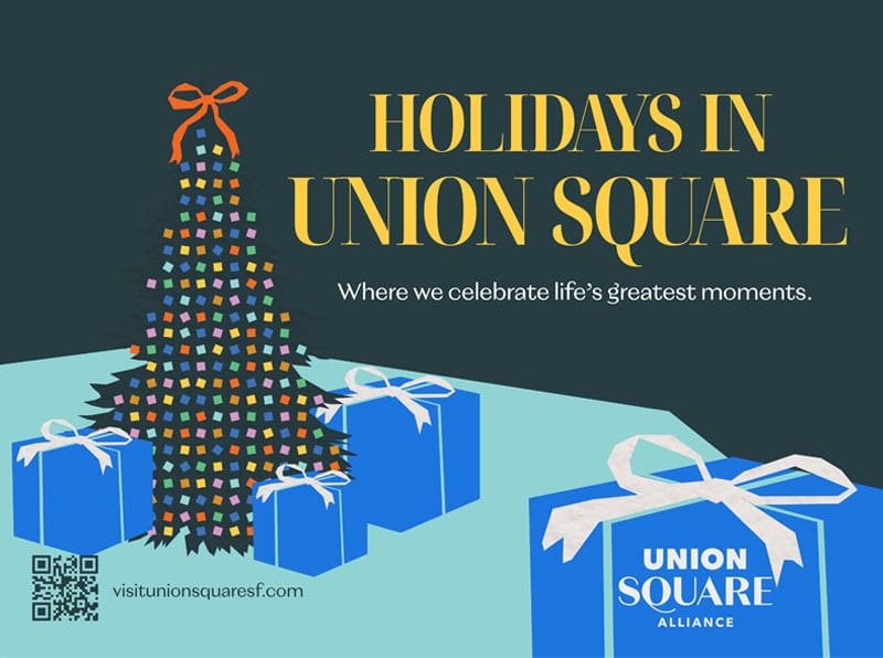 Organized by the Union Square Alliance and with support from the Office of Mayor Daniel Lurie, the Office of Economic and Workforce Development (OEWD), JP Morgan Chase, Amazon, and the Build Group, this annual event will once again feature a holiday marketplace, food trucks, family-friendly stage programming, holiday decor, and seasonal drinks.